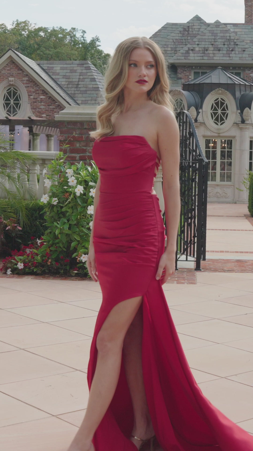 تألقي بفستان ساتان من كولورز! تصميمه الضيق والواسع يُبرز قوامكِ، بينما يُضفي تصميمه بدون حمالات وظهره المُربط لمسةً من الرومانسية. مع الكشكشة والشق وذيل الفستان، هذا الفستان مثاليٌّ تمامًا. استعدي لإبهار الجميع بهذا التصميم الرائع!