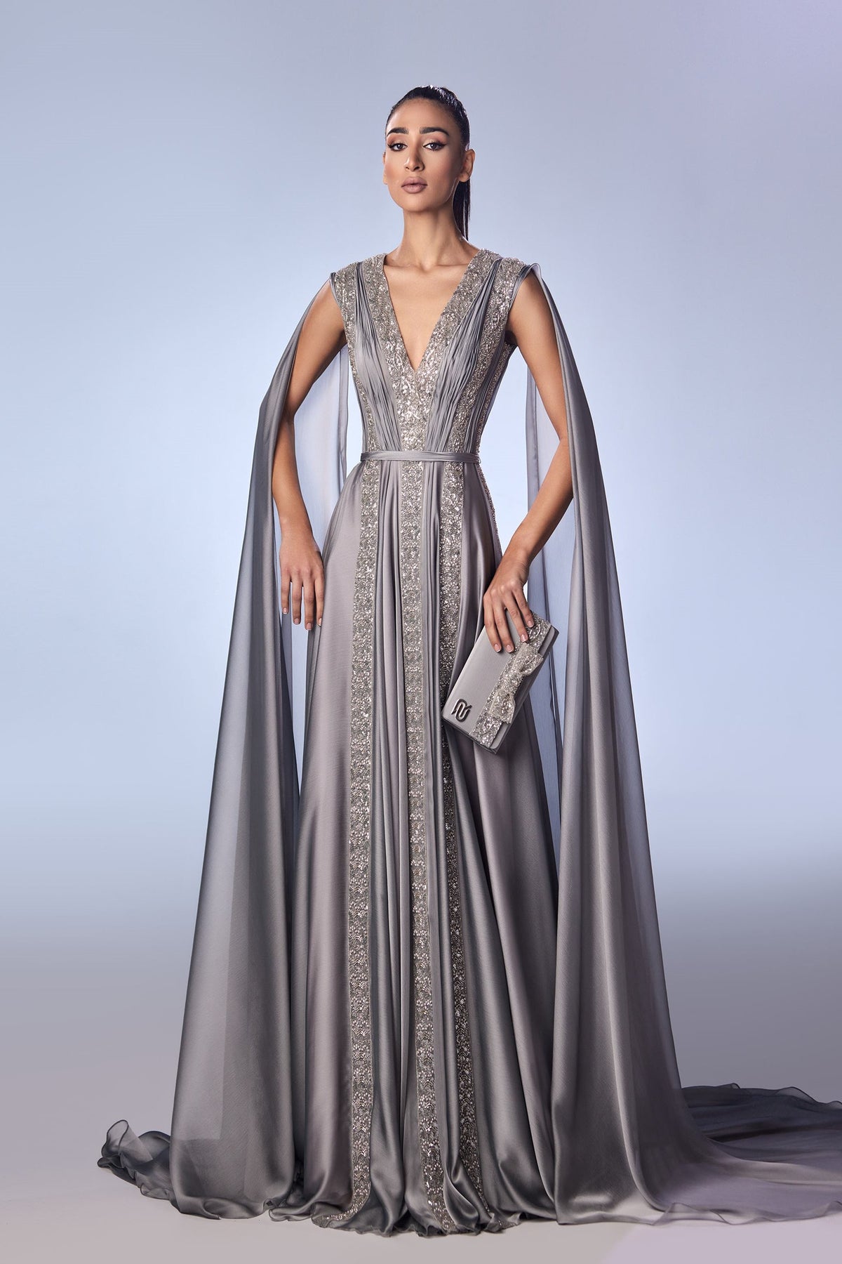 تألقي بإطلالة مسائية أنيقة مع هذا الفستان الرائع من ريفيري كوتور، المزين بالخرز، من مجموعة خريف وشتاء 2046. مصنوع يدويًا بتطريز خرزي متقن على قماش رقيق، ينضح هذا الفستان بالأناقة والرقي. تنورته الطويلة تنساب بسلاسة لإطلالة أنيقة، بينما تُكمل حقيبة الكلاتش المتناسقة إطلالتك. مثالي للمناسبات الرسمية، سيخطف هذا الفستان الأنظار بلا شك.