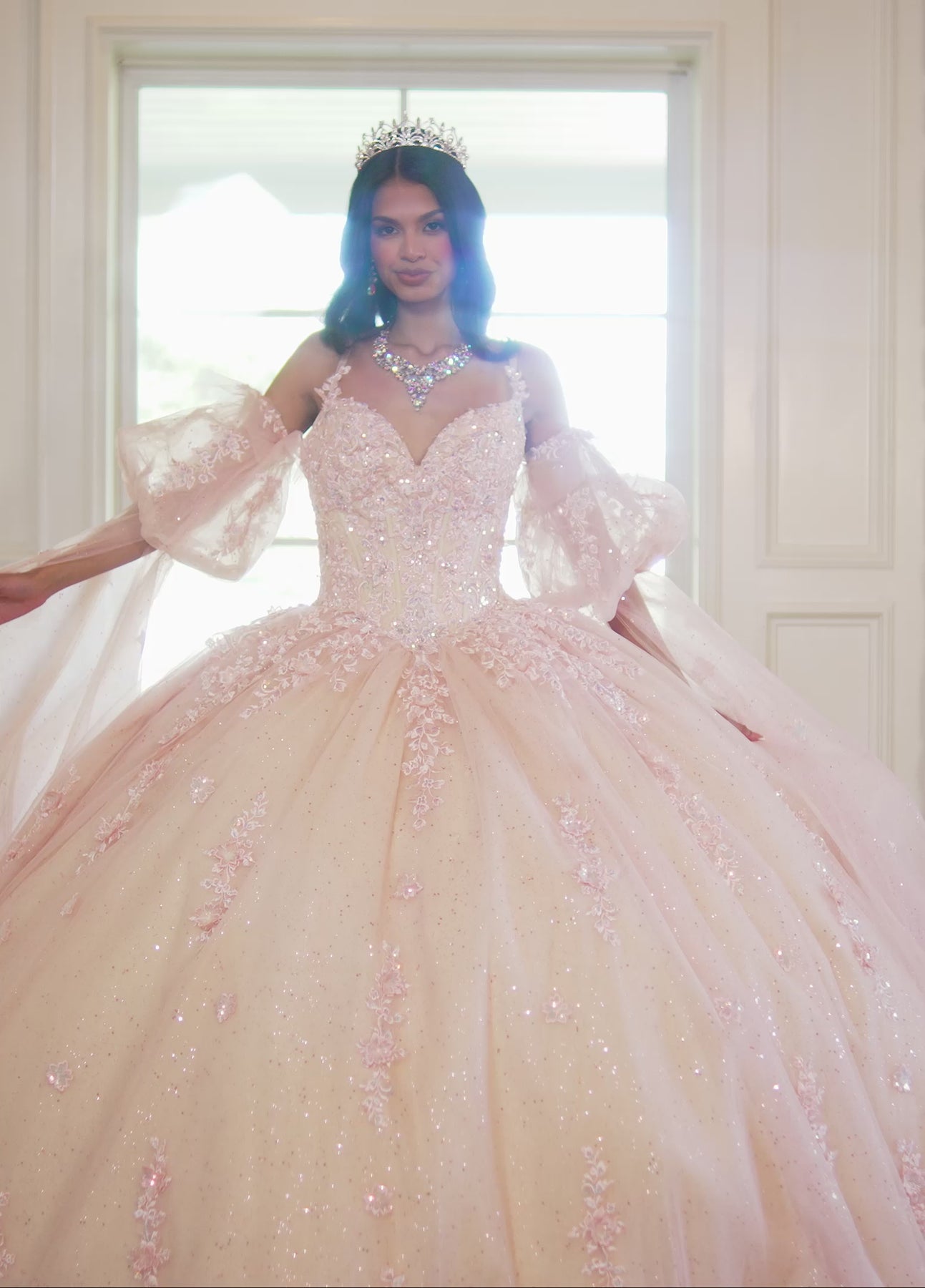 Step into the spotlight with the Rachel Allan RQ1133 Dress, a dazzling ballgown crafted from glitter tulle that twinkles with every move. Delicate applique and beading add extra sparkle, while detachable sleeves let you mix up your look. Double straps and a lace-up back ensure a comfy, flattering fit so you can dance the night away. Perfect for capturing that playful elegance, this dress guarantees you’ll turn heads and steal the show!