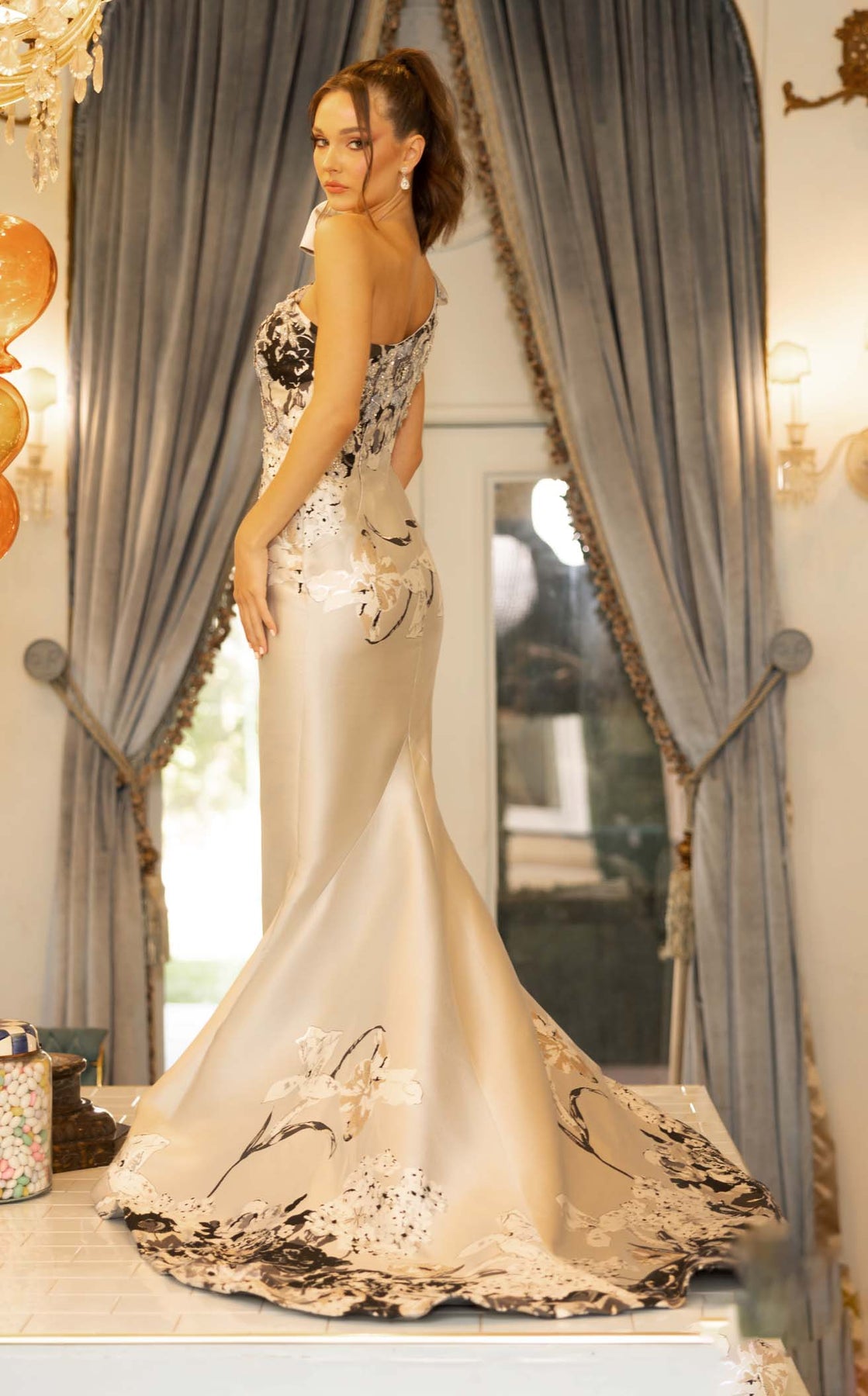 فستان سهرة ميكادو ترامبيت المطبوع 242E3165 هو فستان عصري مبهر يعكس الأناقة والرقي. يتميز بتصميم جذاب بكتف واحد مع رقبة غير متماثلة تضفي لمسة عصرية جذابة. تنورة ترامبيت تُبرز جمال قوامك، مما يخلق مظهرًا أنيقًا وأنثويًا. مزود بقفل خطافي وسحاب جانبي لمقاس مريح، ويأتي بمزيج أنيق من اللونين الفضي والأسود. يتميز هذا الفستان بتصميم أنيق عالي الجودة ودقة في التفاصيل، مما يجعله مناسبًا لأي مناسبة خاصة. اجعليه قطعة أساسية في خزانة ملابسك العصرية.