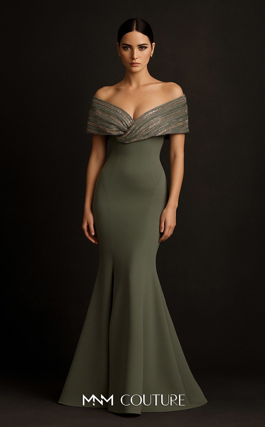 Step out in dazzling style with the Fouad Sarkis F02935 Dress! This fitted mermaid beauty in mint and pink crepe flaunts an off-shoulder neckline bursting with sparkling sequins and beadwork. The V-neck adds a chic twist, while the dramatic train lets you make a grand entrance. Perfect for turning heads at galas or cocktail nights, its hidden zipper ensures a flawless fit that hugs your curves just right. Get ready to shine and twirl your way through any event with this playful, couture-crafted showstopper!