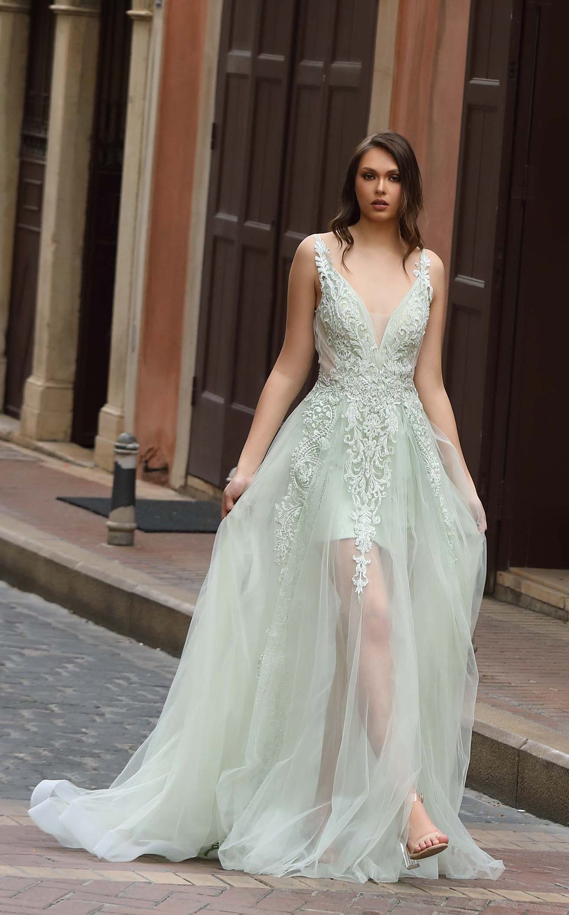 Radiate confidence with the M19021 dress by Modessa Couture. This exquisite dress features a daring plunging neckline that adds a touch of drama and allure. The A-line silhouette offers a flattering, flowy fit, while intricate embellishments add a luxurious sparkle. Perfect for evening galas or special occasions, this dress blends timeless elegance with modern sophistication, ensuring you shine all night long.