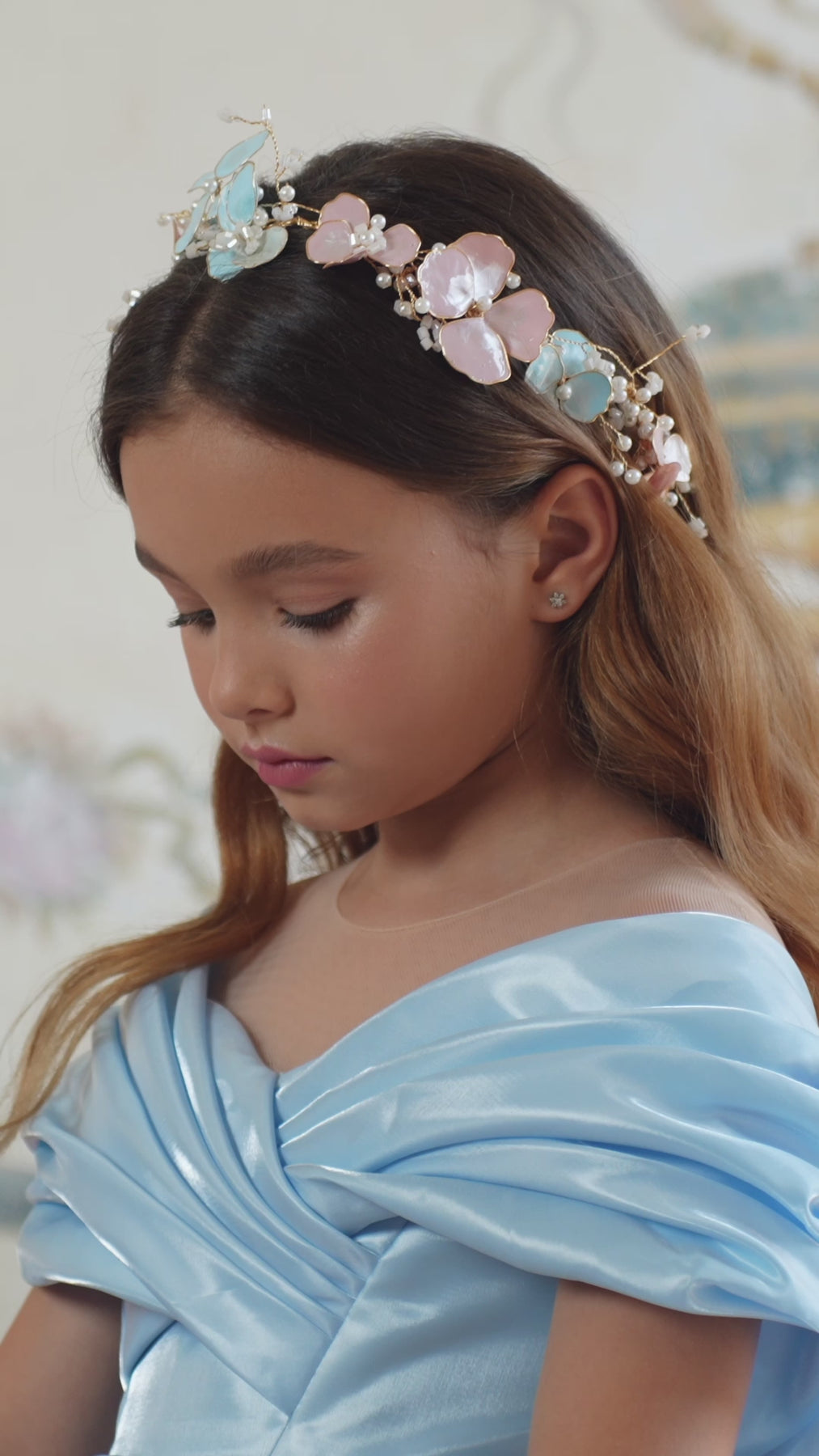 The PENTELEI 3839 Dress is an enchanting gown crafted with timeless elegance. Its off-shoulder neckline drapes gracefully into a fitted bodice that highlights the waist before flowing into a full, floor-length skirt with a dramatic train. A large statement bow at the back adds a playful touch of sophistication, making this dress the perfect choice for grand celebrations and special occasions.