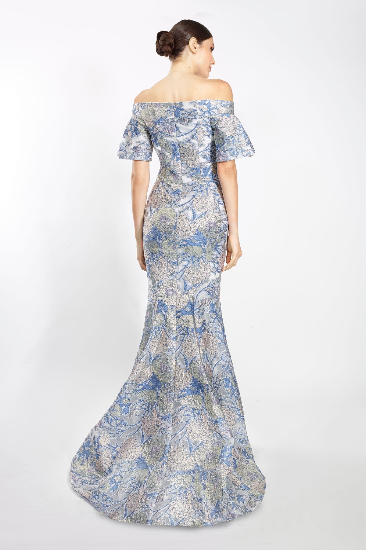 Get ready to stun in this Janique 3941 Dress! With an off-shoulder design, flutter sleeves, and a stunning floral print, this trumpet gown is perfect for any occasion. You'll feel elegant and stylish all night long.