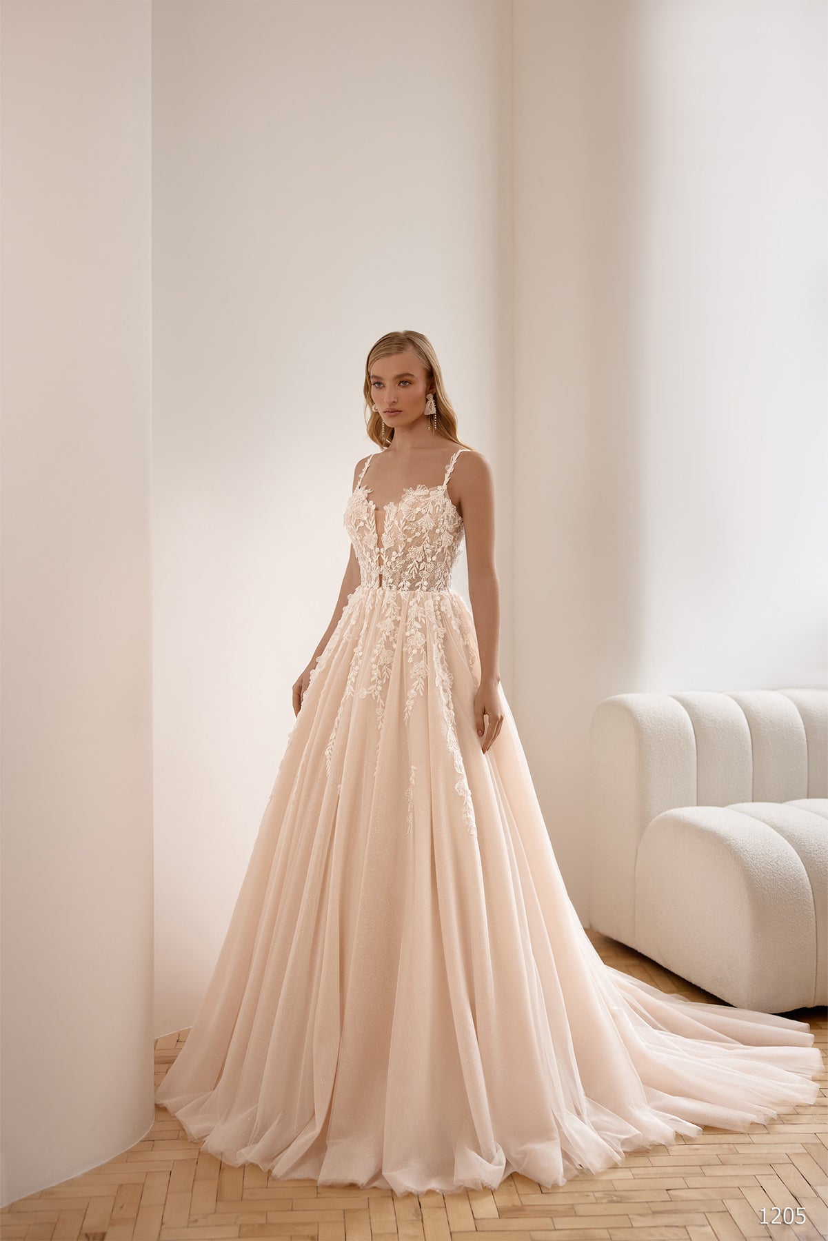 The Vissaria 1205 Dress delivers timeless bridal beauty with its elegant long silhouette. Featuring a refined V-neckline and sleeveless design, this dress offers a sophisticated look that celebrates your individuality. The graceful draping flatters your figure while providing the comfort you need to fully enjoy your special day. Clean lines and flowing fabric create a versatile canvas for your personal style—dress it up with statement jewelry or keep it minimal for understated glamour. This is the dress that makes you feel like the best version of yourself, ready to create unforgettable memories.